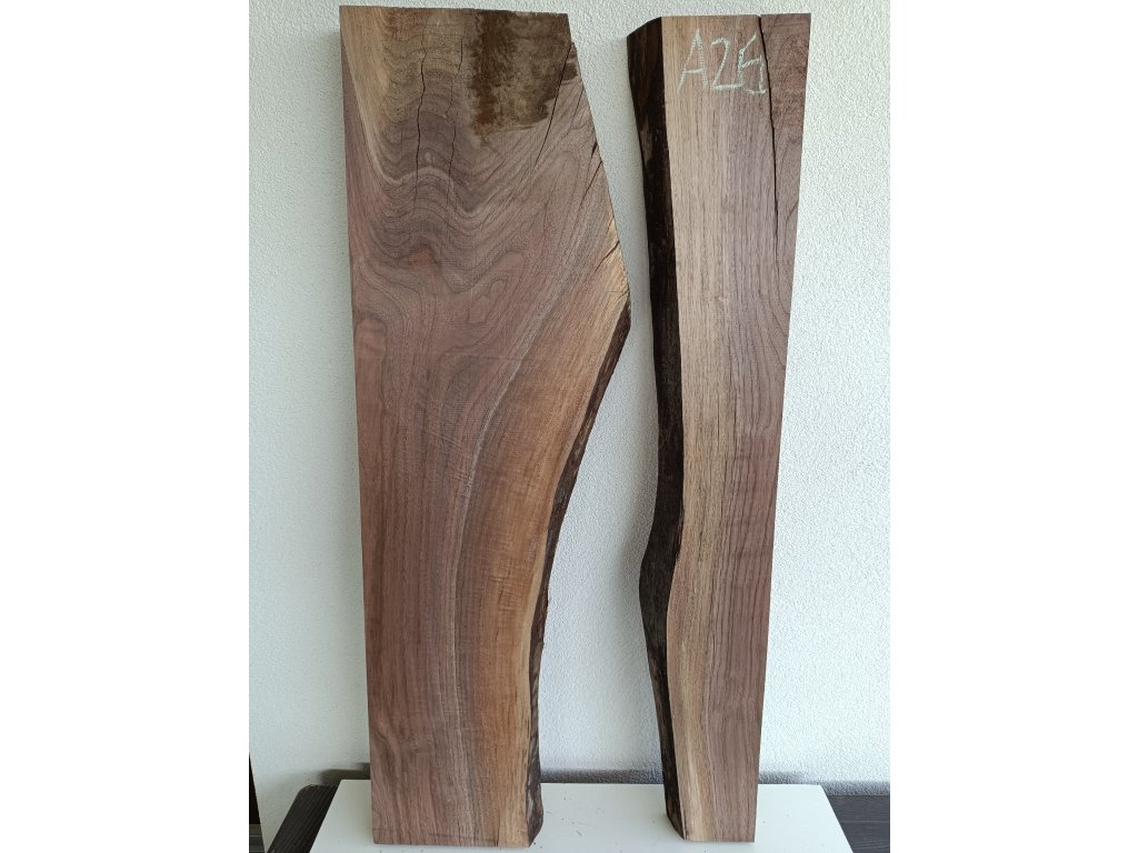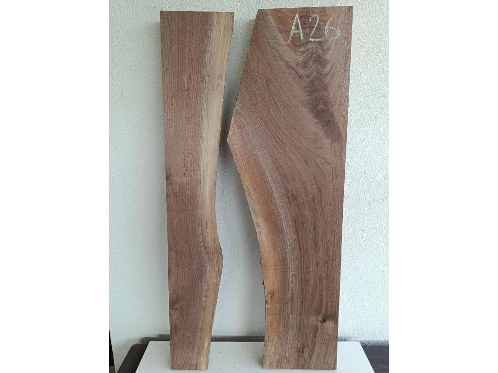 Ořešák - set atypických fošen A26 s krásnou kresbou pro epoxidovou tvorbu, rozměr délka 120 cm x šířka 40/46 cm, tloušťka 54mm. Hmotnost 18,5 kg. Vysušené v sušárně na 8%, srovnáno a zkalibrováno na CNC a broušeno na zrnitost 80. Připraveno k zalití.