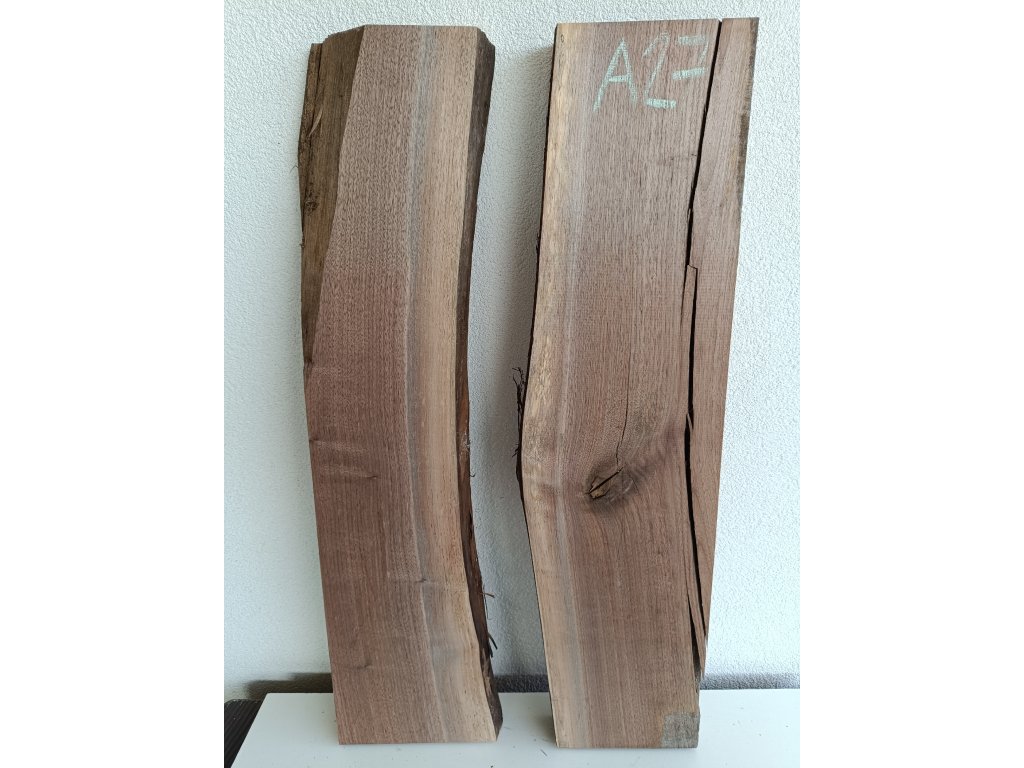 Ořešák - set atypických fošen A27 s krásnou kresbou pro epoxidovou tvorbu, rozměr délka 89 cm x šířka 40 cm, tloušťka 54mm. Hmotnost 11,5 kg. Vysušené v sušárně na 8%, srovnáno a zkalibrováno na CNC a broušeno na zrnitost 80. Připraveno k zalití.