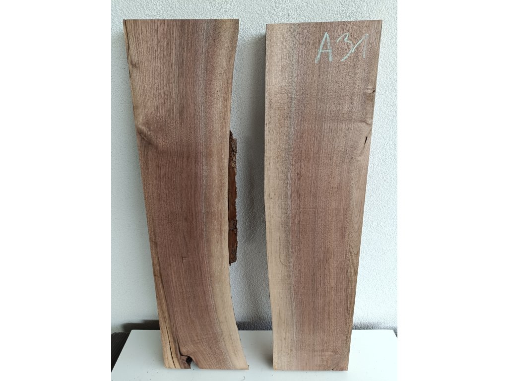 Ořešák - set atypických fošen A31 s krásnou kresbou pro epoxidovou tvorbu, rozměr délka 87 cm x šířka 41/45 cm, tloušťka 54mm. Hmotnost 12 kg. Vysušené v sušárně na 8%, srovnáno a zkalibrováno na CNC a broušeno na zrnitost 80. Připraveno k zalití.