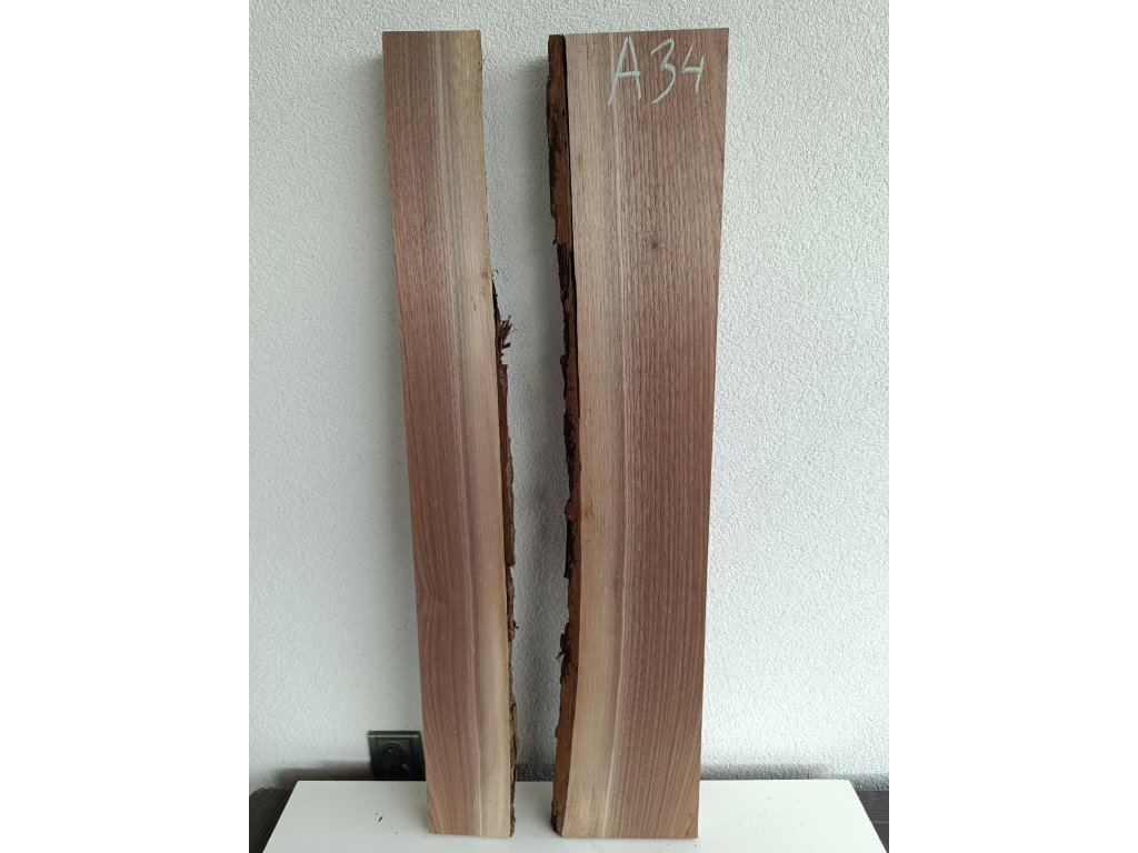 Ořešák - set atypických fošen A34 s krásnou kresbou pro epoxidovou tvorbu, rozměr délka 101 cm x šířka 28 cm, tloušťka 48mm. Hmotnost 8 kg. Vysušené v sušárně na 8%, srovnáno a zkalibrováno na CNC a broušeno na zrnitost 80. Připraveno k zalití.