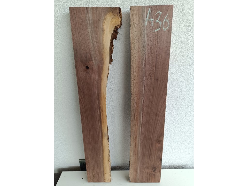 Ořešák - set atypických fošen A36 s krásnou kresbou pro epoxidovou tvorbu, rozměr délka 91 cm x šířka 31/37 cm, tloušťka 48mm. Hmotnost 9 kg. Vysušené v sušárně na 8%, srovnáno a zkalibrováno na CNC a broušeno na zrnitost 80. Připraveno k zalití.