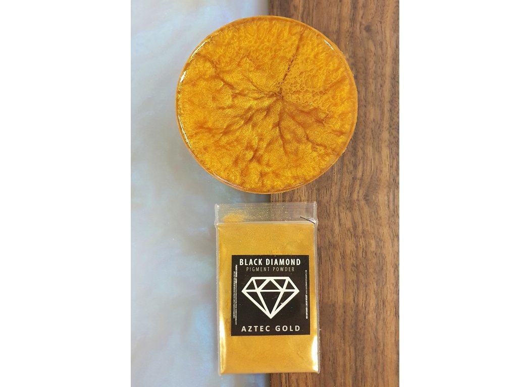 Black Diamond pigment Aztec Gold is a high-quality metallic pigment with an impressive rich and glowing golden color. Thanks to the small microparticles of mica with a size of 10-60 micrometers, it floats well, so it settles less at casting. They allow creating of metallic, pearlescent, iridescent and other effects. That is why thea are popular among professionals and do-it-yourselfers for epoxy casting, making soap, candles, automotive paint, slime, jewelry, fiberglass, etc. Suitable for tinting, darkening or lightening of other metallic pigments.