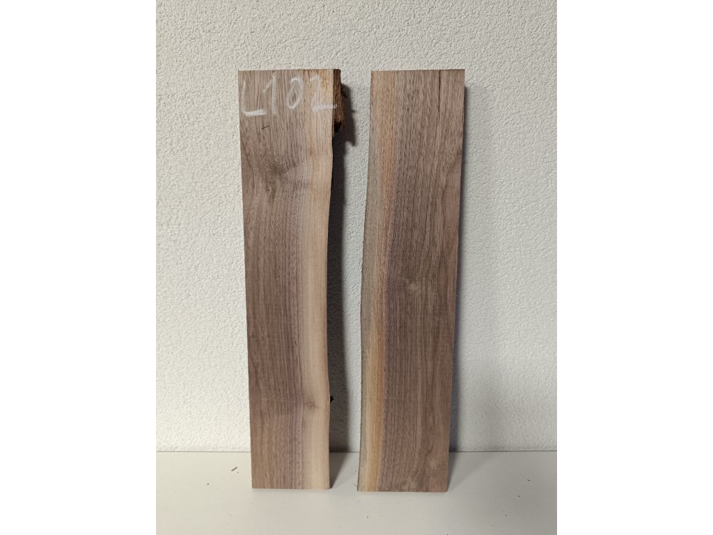 Ořešák - set atypických prken L102 s krásnou kresbou pro epoxidovou tvorbu, rozměr délka 50 cm x šířka 21 cm (přiložené k sobě bez mezer), tloušťka 28mm. Hmotnost 2,0 kg. Vysušené v sušárně na 8%, srovnáno a zkalibrováno na CNC a broušeno na zrnitost 80. Připraveno k zalití.