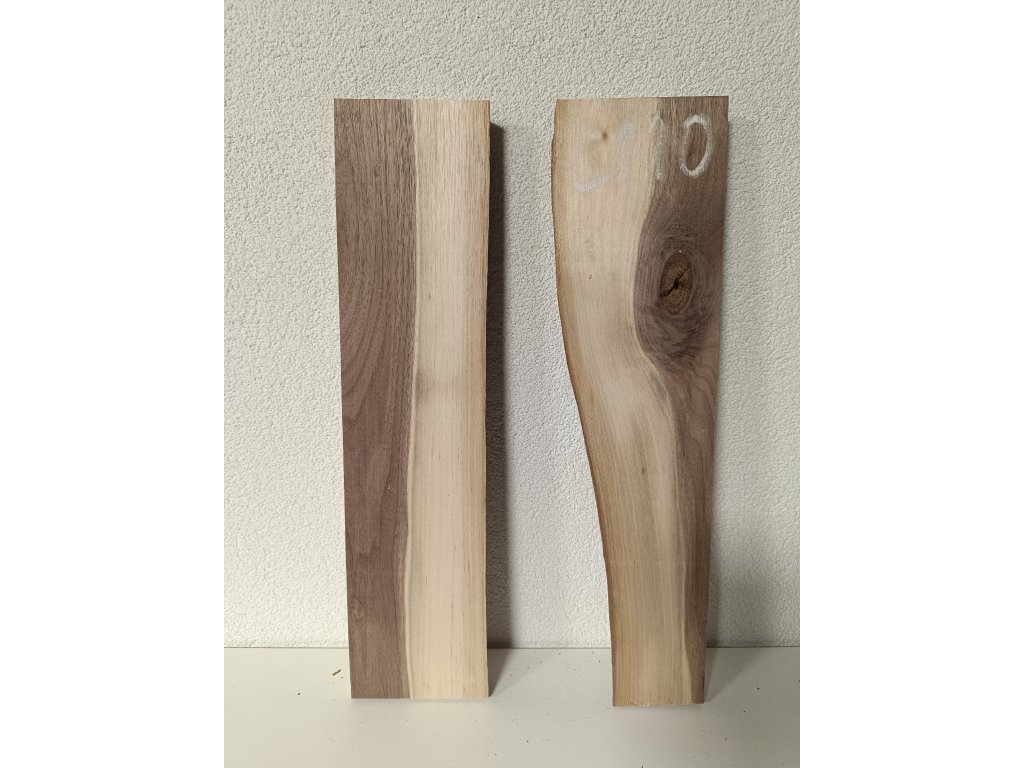 Ořešák - set atypických prken L110 s krásnou kresbou pro epoxidovou tvorbu, rozměr délka 50 cm x šířka 23 cm (přiložené k sobě bez mezer), tloušťka 28mm. Hmotnost 2,0 kg. Vysušené v sušárně na 8%, srovnáno a zkalibrováno na CNC a broušeno na zrnitost 80. Připraveno k zalití.
