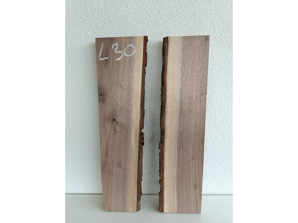 Ořešák - set atypických prken L30 s krásnou kresbou pro epoxidovou tvorbu, rozměr délka 50cm x šířka 24 cm (přiložené k sobě bez mezer), tloušťka 30mm. Hmotnost 2,0 kg. Vysušené v sušárně na 8%, srovnáno a zkalibrováno na CNC a broušeno na zrnitost 80. Připraveno k zalití.
