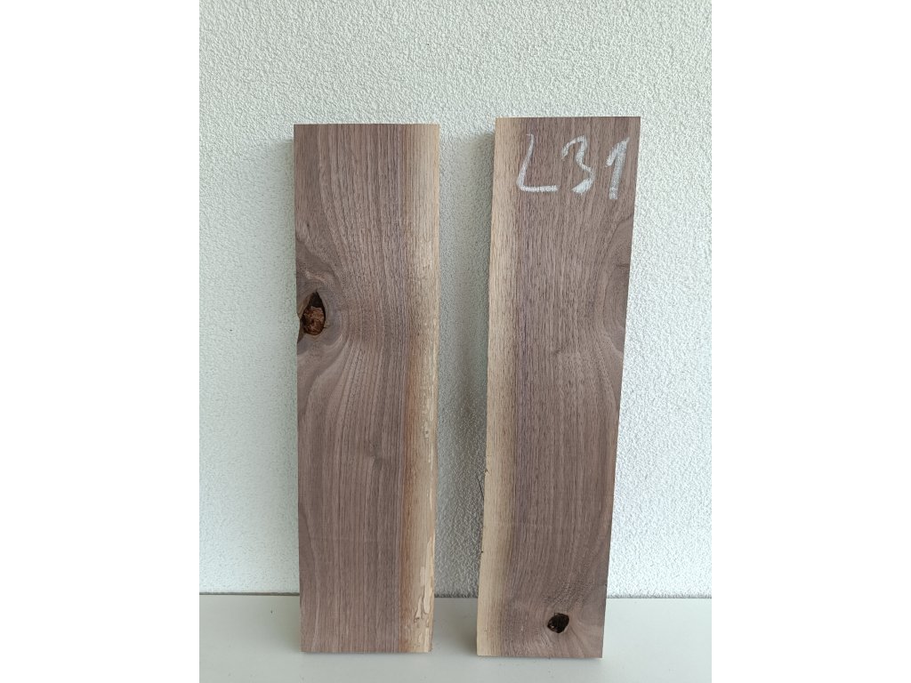 Ořešák - set atypických prken L31 s krásnou kresbou pro epoxidovou tvorbu, rozměr délka 50cm x šířka 25 cm (přiložené k sobě bez mezer), tloušťka 30mm. Hmotnost 2,0 kg. Vysušené v sušárně na 8%, srovnáno a zkalibrováno na CNC a broušeno na zrnitost 80. Připraveno k zalití.