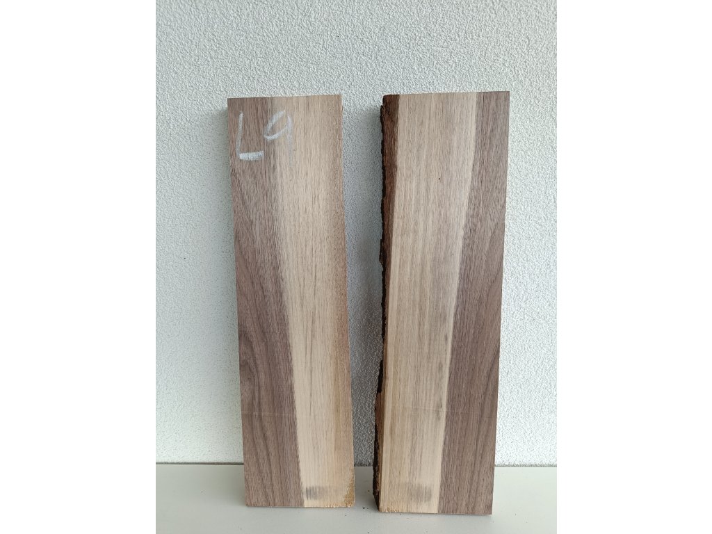 Ořešák - set atypických prken L9 s krásnou kresbou pro epoxidovou tvorbu, rozměr délka 50cm x šířka 27 cm (přiložené k sobě bez mezer), tloušťka 30mm. Hmotnost 2,0 kg. Vysušené v sušárně na 8%, srovnáno a zkalibrováno na CNC a broušeno na zrnitost 80. Připraveno k zalití.