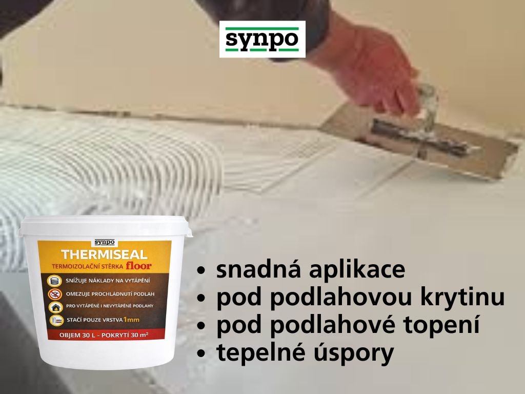 THERMISEAL FLOOR je stěrková termoaktivní a termoizolační hmota na bázi vodou ředitelného tmelu obohacená o speciální plnivo a pokročilé technologie. Pouhá 1mm vrstva po aplikaci vytváří kompaktní a pružnou vrstvu s vynikajícími tepelně-izolačními vlastnostmi.