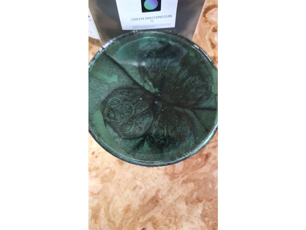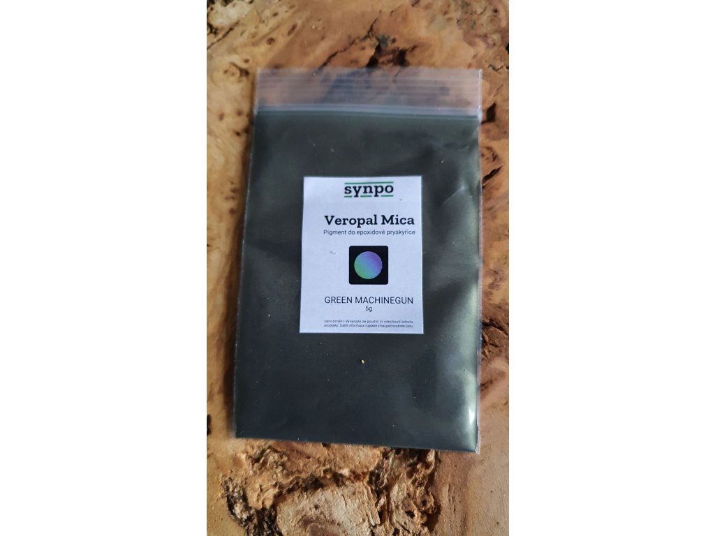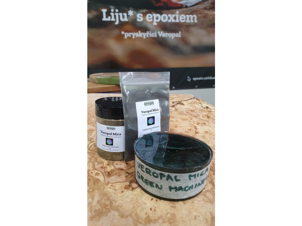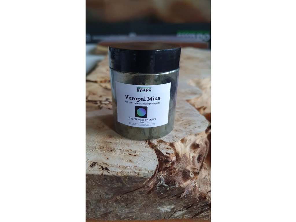 VEROPAL MICA pigment GREEN MACHINEGUN je oblíbený metalický pigment s velmi sytou zelenou barvou a jemnými metalickými odlesky. Díky malým mikročásticím slídy o velikosti 10-60 mikrometrů se dobře udržuje ve vznosu, takže méně klesá při odlévání ke dnu. To potom umožňuje vytvářet metalické, perleťové, duhové a jiné efekty a díky tomu si získává oblibu jak u profesionálů, tak i kutilů pro epoxidové lití, výrobu mýdla, svíček, automobilových barev, slizu, šperků, sklolaminátu atd. Vhodný k tónování, ztmavování či zesvětlování jiných metalických pigmentů. Světlostálý, dlouhodobě testovaný.